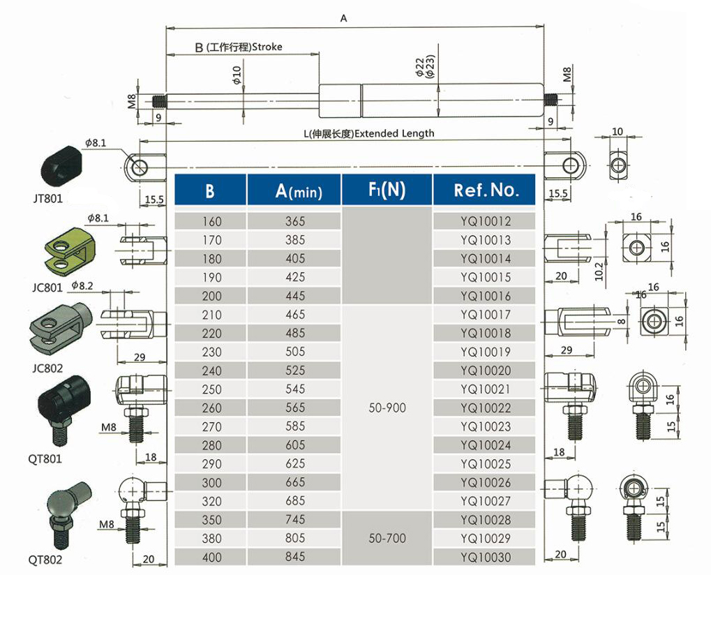 注:由于氣彈簧是非標(biāo)準(zhǔn)的,以上僅為型號的一部分。我們可以根據(jù)客戶的要求定制。