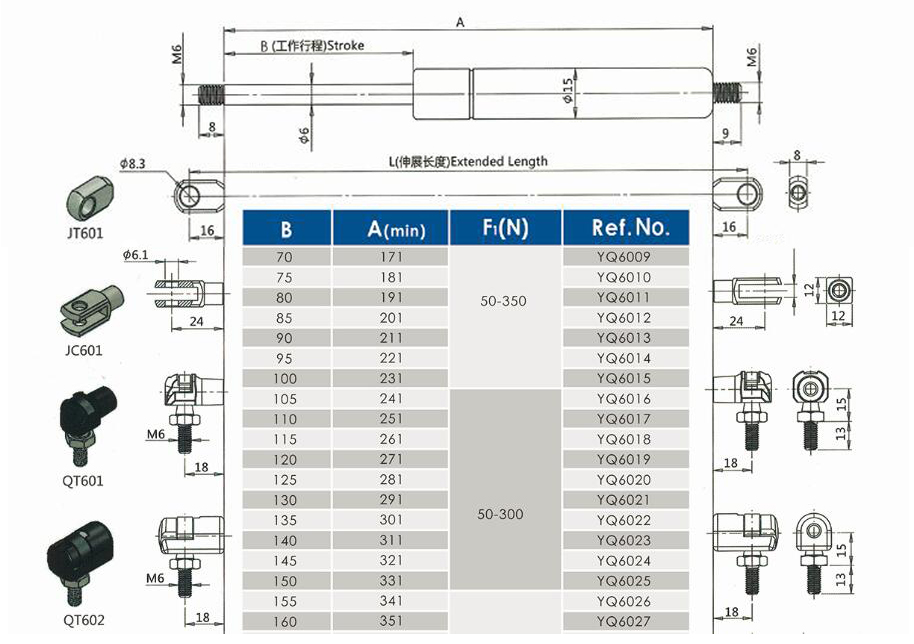 注:由于氣彈簧是非標(biāo)準(zhǔn)的,以上僅為型號(hào)的一部分。我們可以根據(jù)客戶的要求定制。