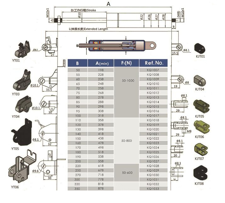 注:由于氣彈簧是非標(biāo)準(zhǔn)的,以上僅為型號的一部分。我們可以根據(jù)客戶的要求定制。