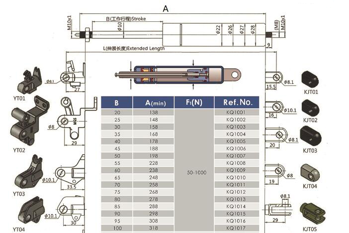 注:由于氣彈簧是非標(biāo)準(zhǔn)的,以上僅為型號的一部分。我們可以根據(jù)客戶的要求定制。