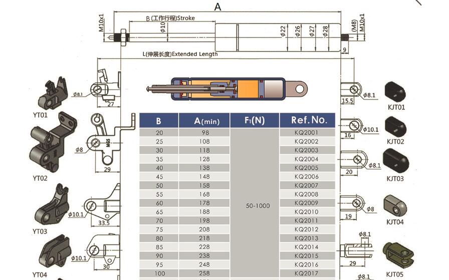 注:由于氣彈簧是非標準的,以上僅為型號的一部分。我們可以根據(jù)客戶的要求定制。